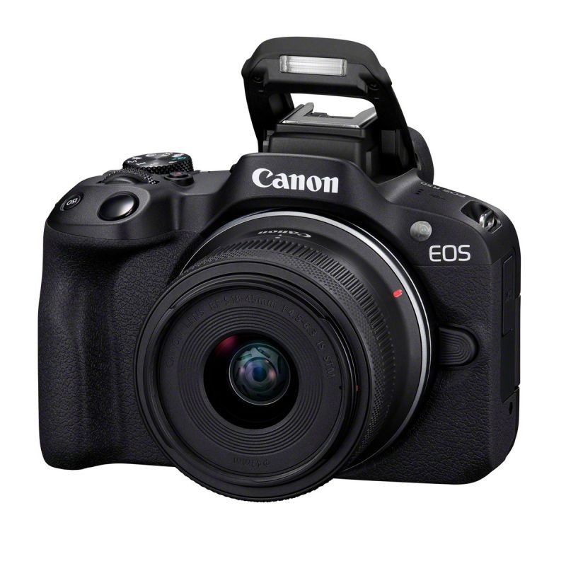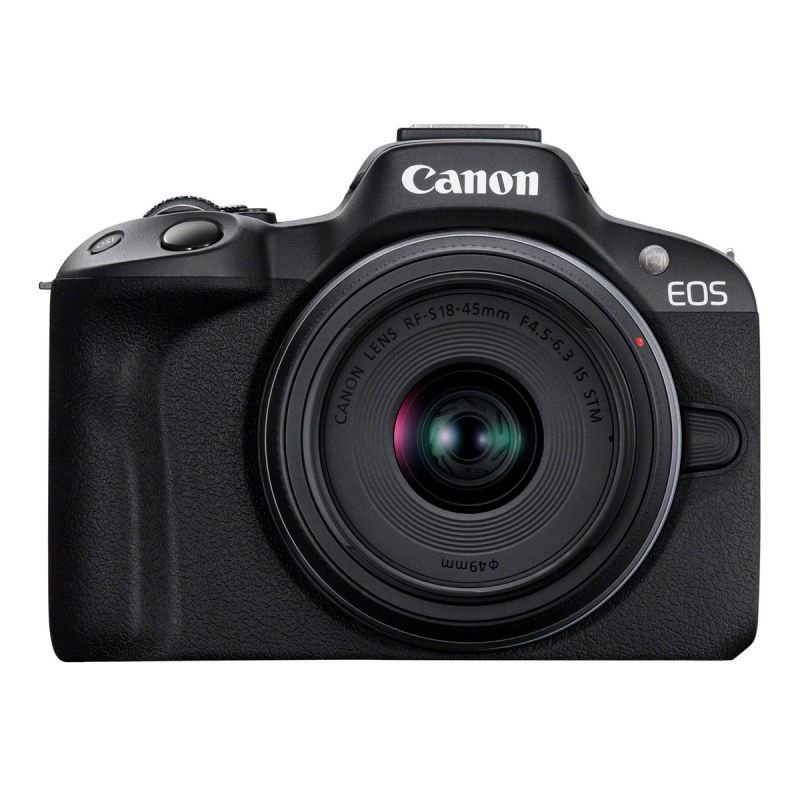 A Canon EOS R50 com a objetiva RF-S 18-45 mm f/4.5-6.3 IS STM é um kit híbrido APS-C compacto,