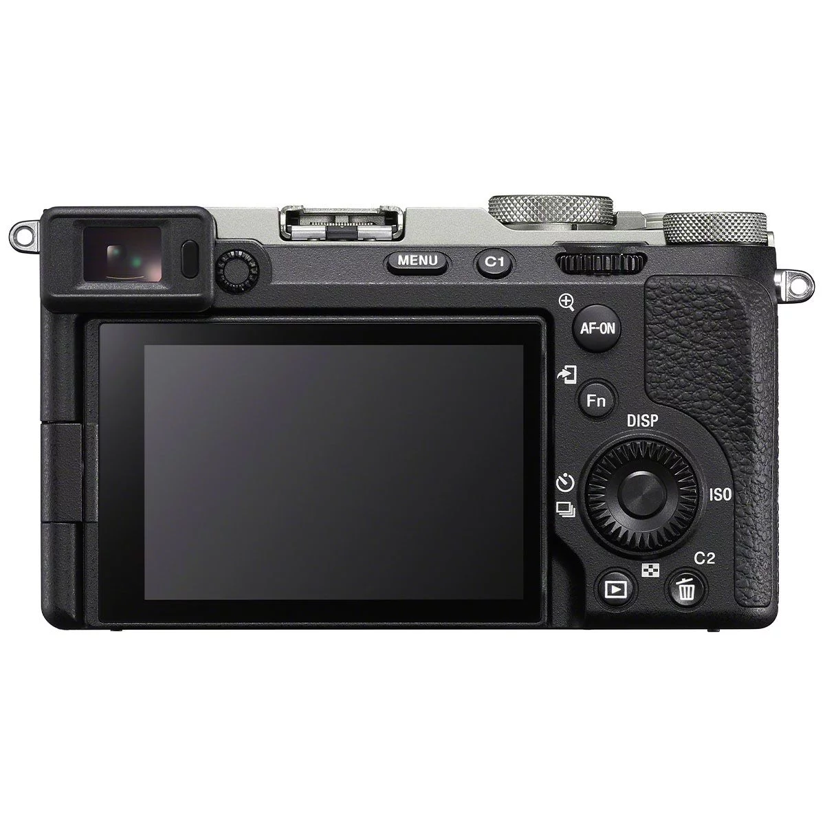 A Sony Alpha 7C II prateada é uma câmara híbrida full-frame compacta que combina um design elegante com desempenho profissional.